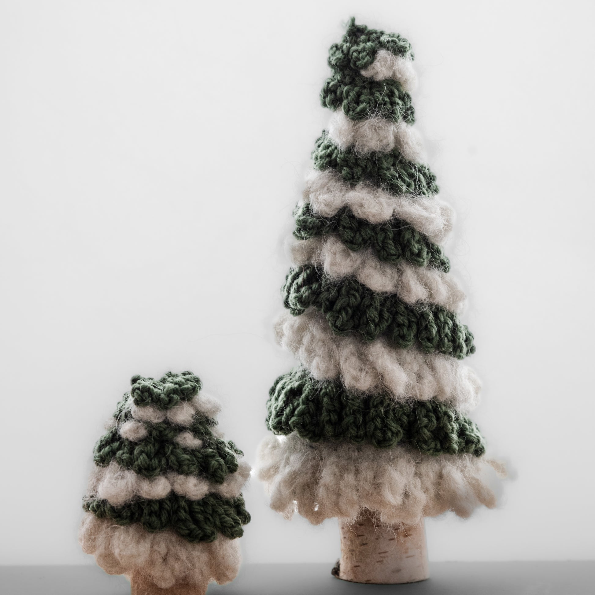 Ajoutez une présence chaleureuse et élégante à votre décor des Fêtes avec ce grand sapin en crochet de 20 cm. Fait à la main avec de la laine naturelle et installé sur un véritable petit tronc en bois, il combine douceur, style rustique et charme artisanal.